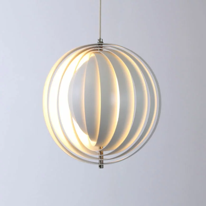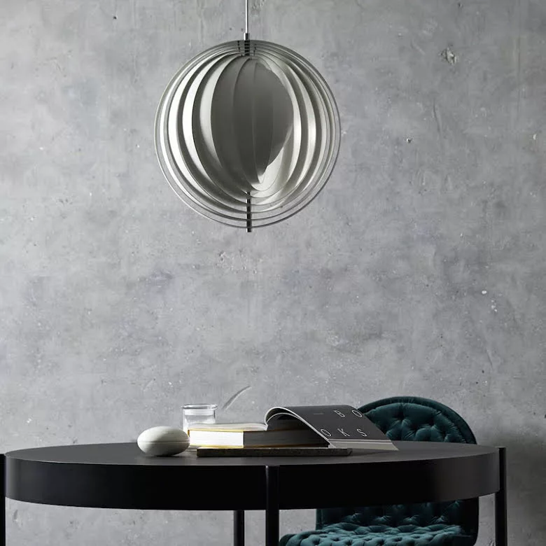 Moon Pendel Ă€r en svĂ€risk formad taklampa bestĂ„ende av vertikala lameller i metall arrangerade likt en flĂ€kt. Denna design skapar ett unikt och anpassningsbart ljussken. Moon takpendel Ă€r designad av Verner Panton Ă„r 1960 och Ă€r lika modern nu som dĂ„. Finns i tre olika storlekar. Den största Ă€r hela 150 cm i diameter och om du Ă€r intresserad av den sĂ„ ber vi dig att kontakta oss för en offert.Â