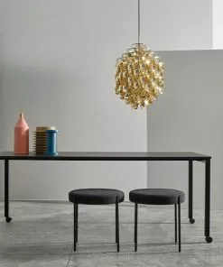 Denna enastĂ„ende takpendel frĂ„n Verpan designad av Verner Panton 1969 förgyller alla olika sorters hem. Den unika designen gör att lampan transformeras likt en kinetisk skulptur vid minsta vindpust, dĂ„ de vackra spriralerna skapar rörelse och ljus. Spiral SP01 Ă€r en av mĂ„nga lampor i Spiralserien, finns i guld- och silverplatering.Â
