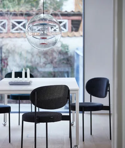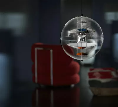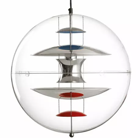 VP Globe frÄn 1969 Àr en av Verner Pantons mest kÀnda pendlar. Lampan har en konstruktion av olikfÀrgade reflektorer inneslutna i en glassfÀr och Àr bÄde tidlös och modern. Finns i flera fÀger och utföranden.